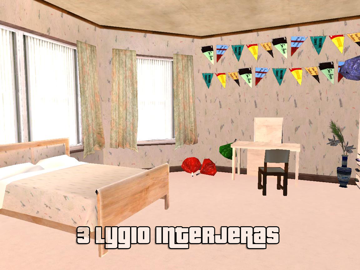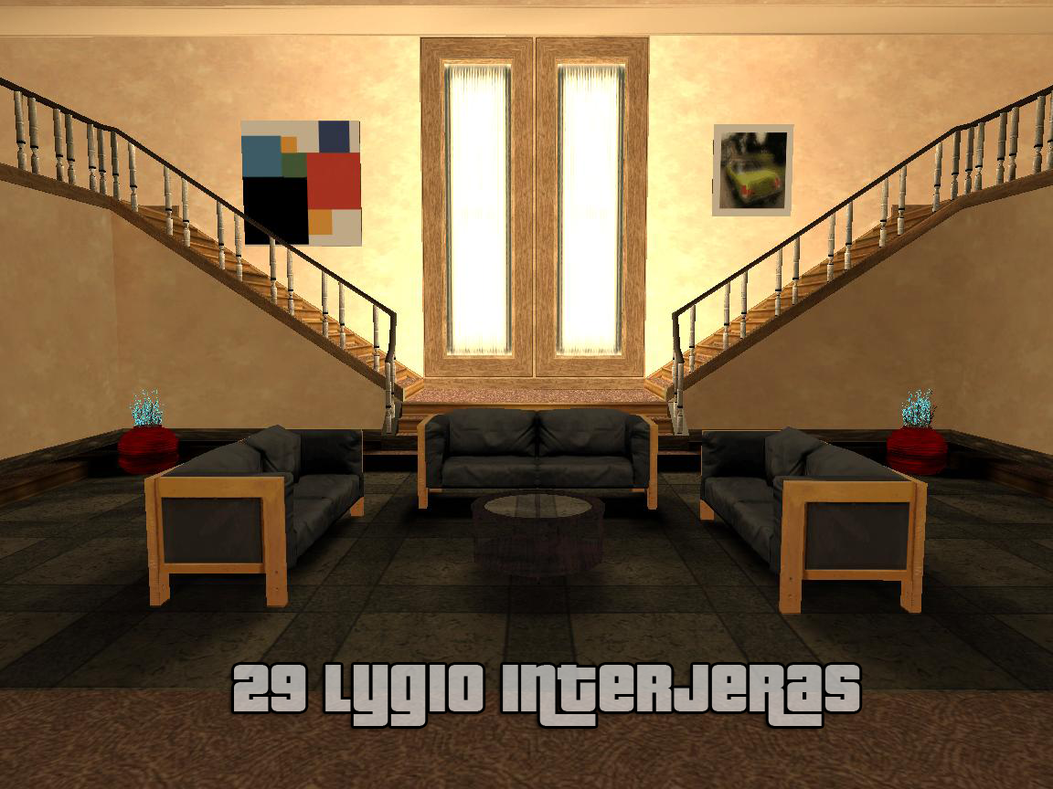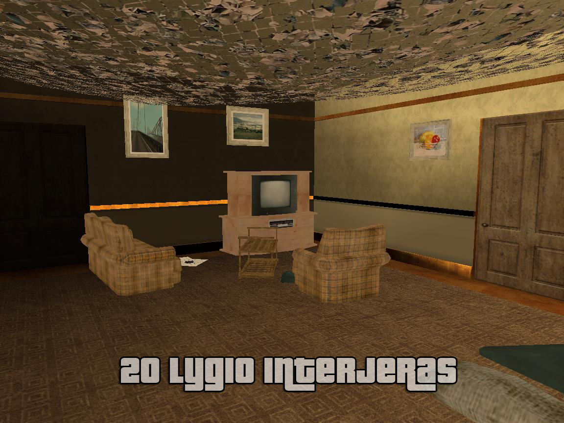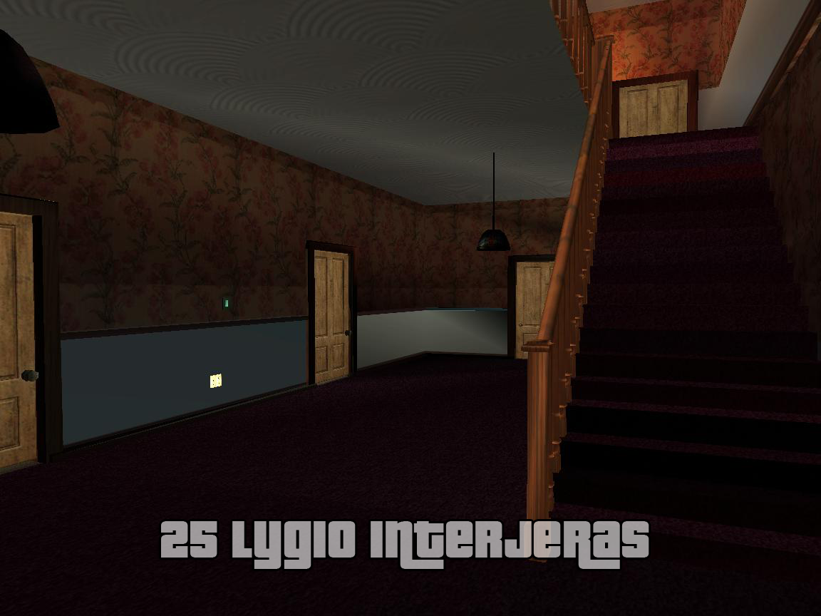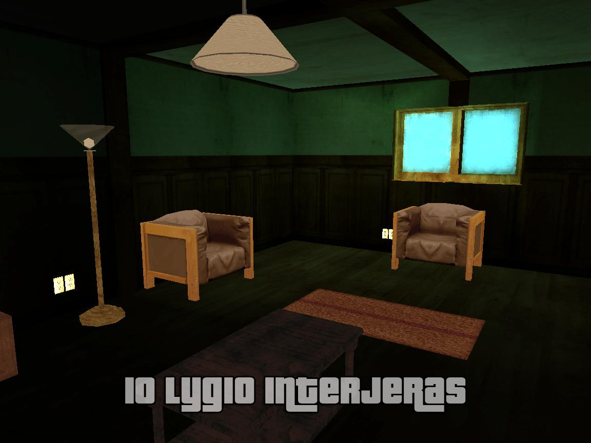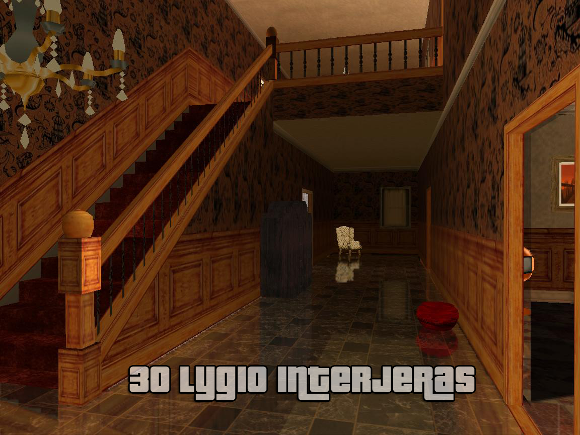 Print Namų interjerai Išviso namų interjerų yra 31. Butai turi tik 19 interjerų. Visi interjerai sudėlioti pagal gražumą. Remontas - 30,000LT; trukmė - 2h. Interjerai Interjerai be baldų