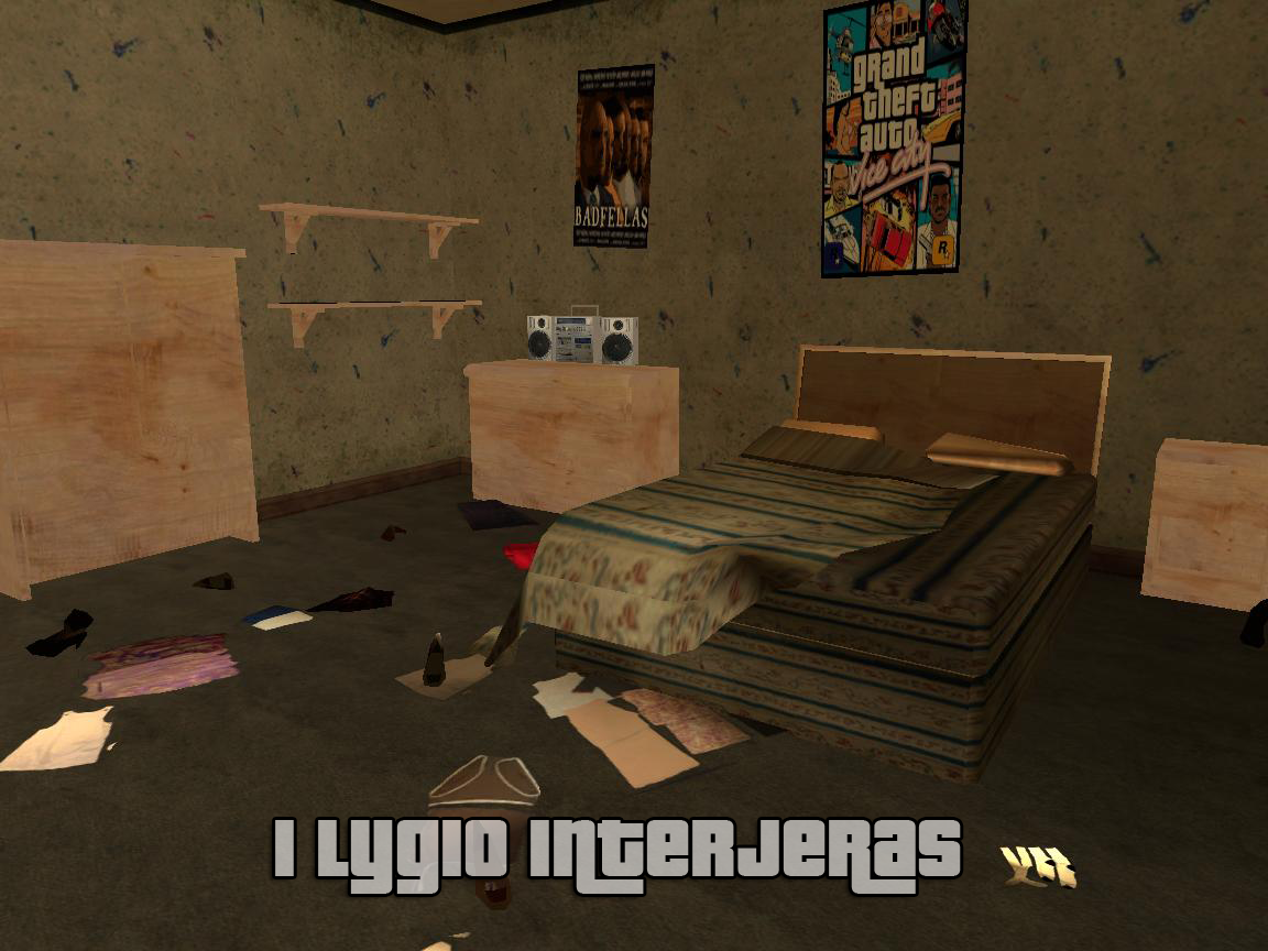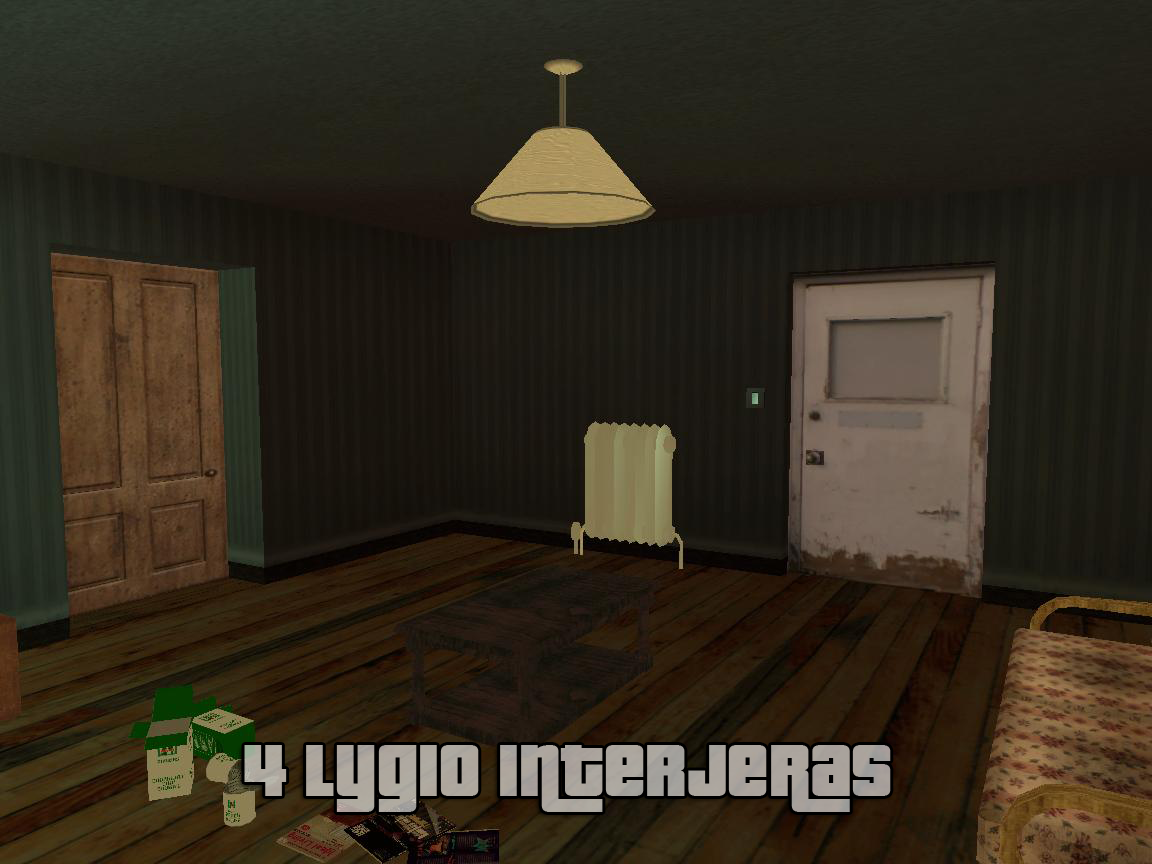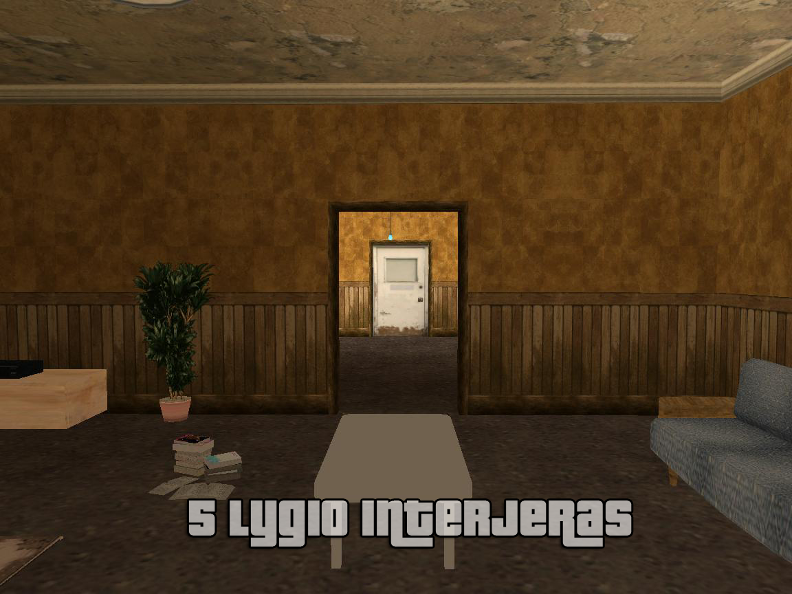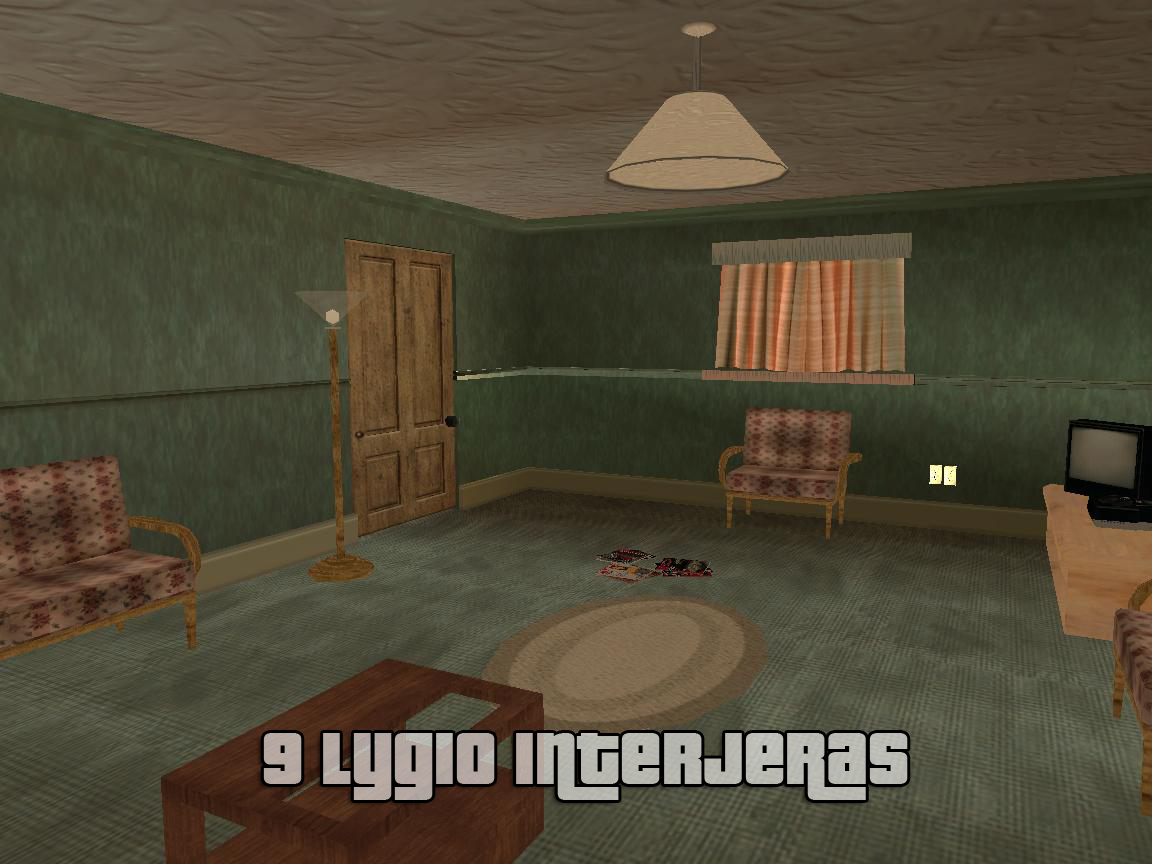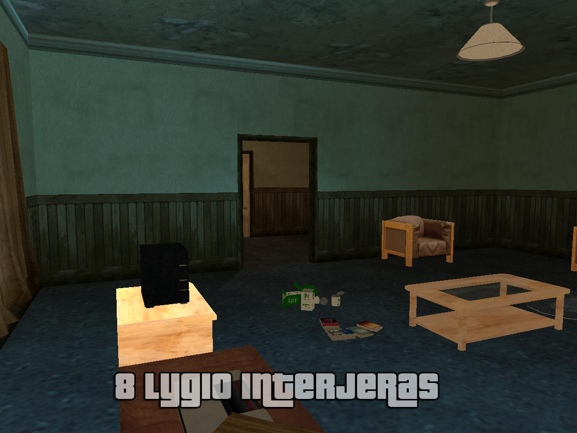 Print Namų interjerai Išviso namų interjerų yra 31. Butai turi tik 19 interjerų. Visi interjerai sudėlioti pagal gražumą. Remontas - 30,000LT; trukmė - 2h. Interjerai Interjerai be baldų
