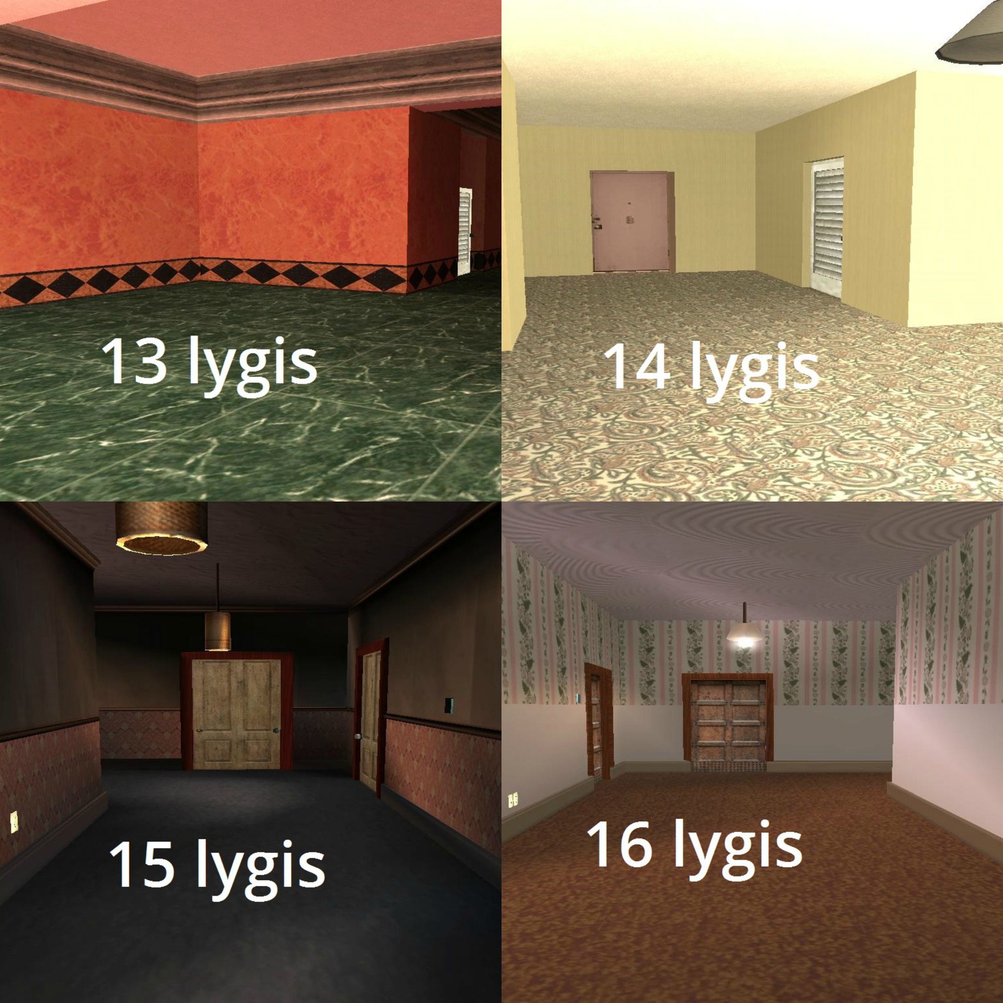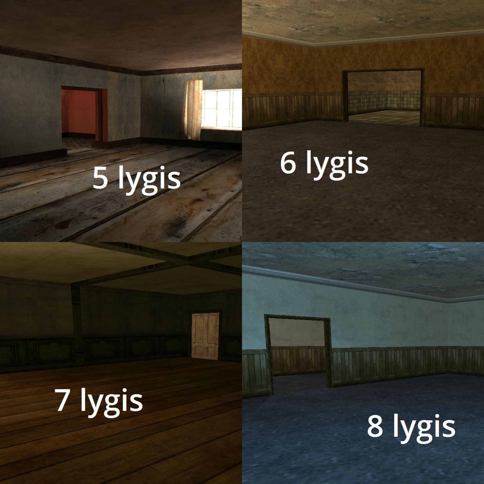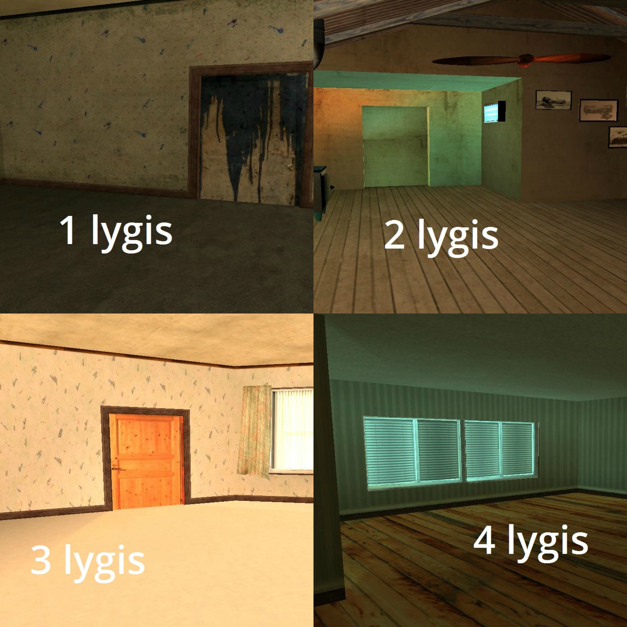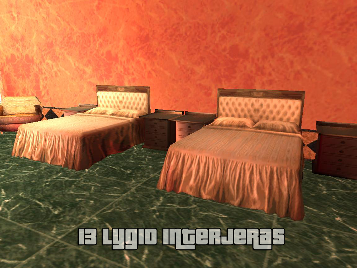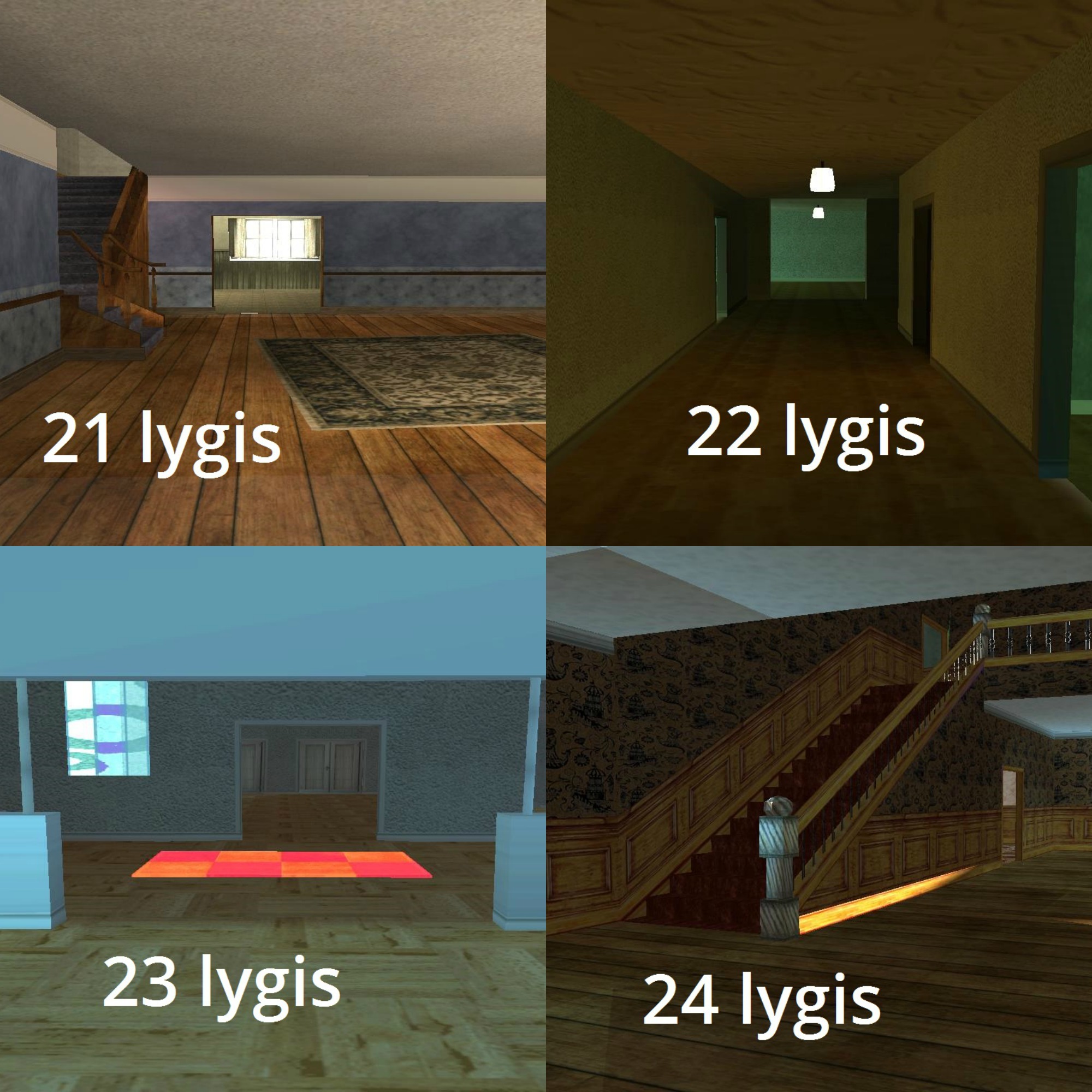 Print Namų interjerai Išviso namų interjerų yra 31. Butai turi tik 19 interjerų. Visi interjerai sudėlioti pagal gražumą. Remontas - 30,000LT; trukmė - 2h. Interjerai Interjerai be baldų